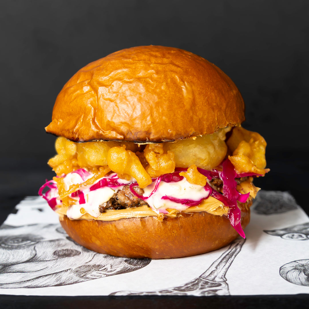 A nostalgic twist—smooth peanut butter meets crispy fried banana in a sweet and savoury burger you won’t forget.
