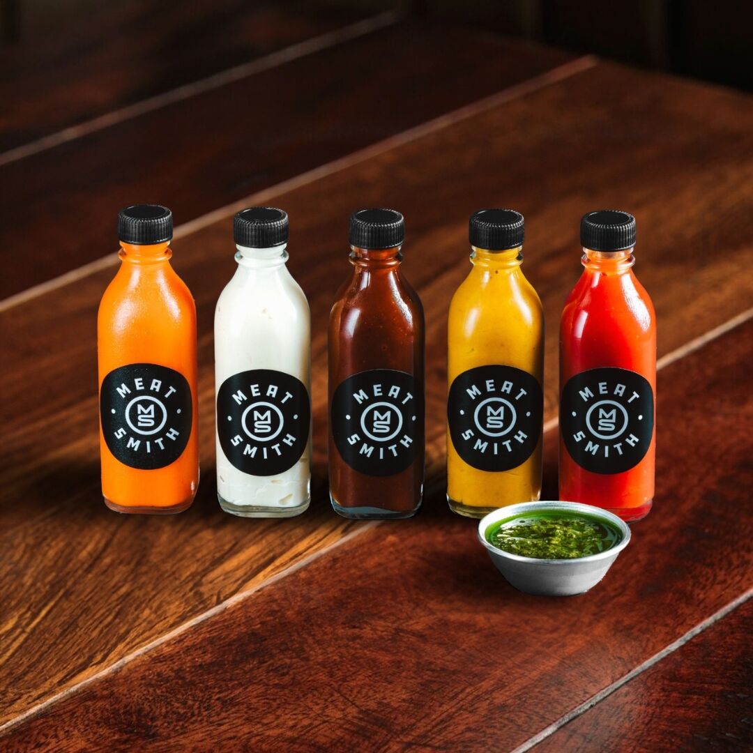 Sauces available: Tomato Ketchup, BBQ Mustard, Meatsmith BBQ, Buffalo, and Aioli.