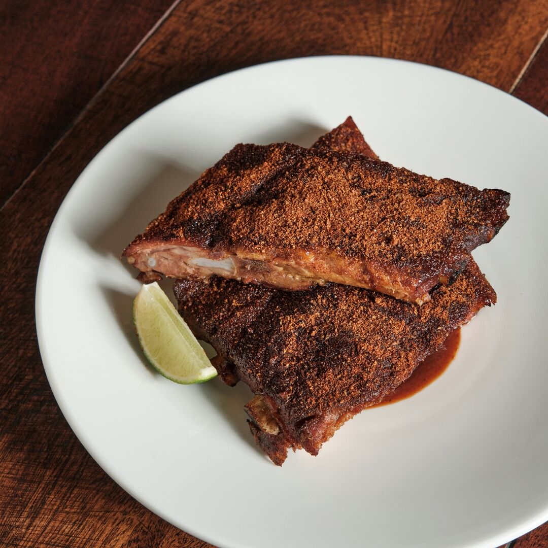 Half rack Pork Ribs – 3-Hour Smoked, Lime and Chipotle Glazed or Our House Made Pork Rub.