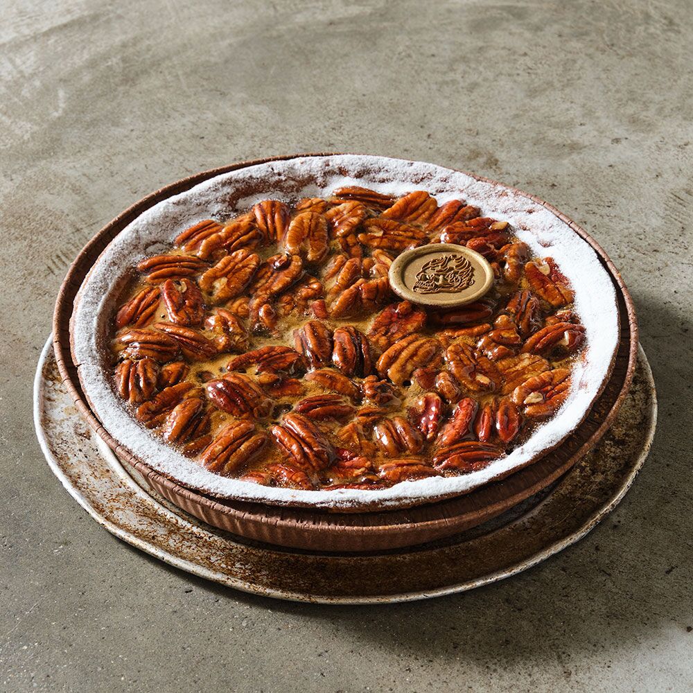Add on Pecan Pie – Contains pecan nuts, eggs, dairy, sugar, molasses, honey and butter.